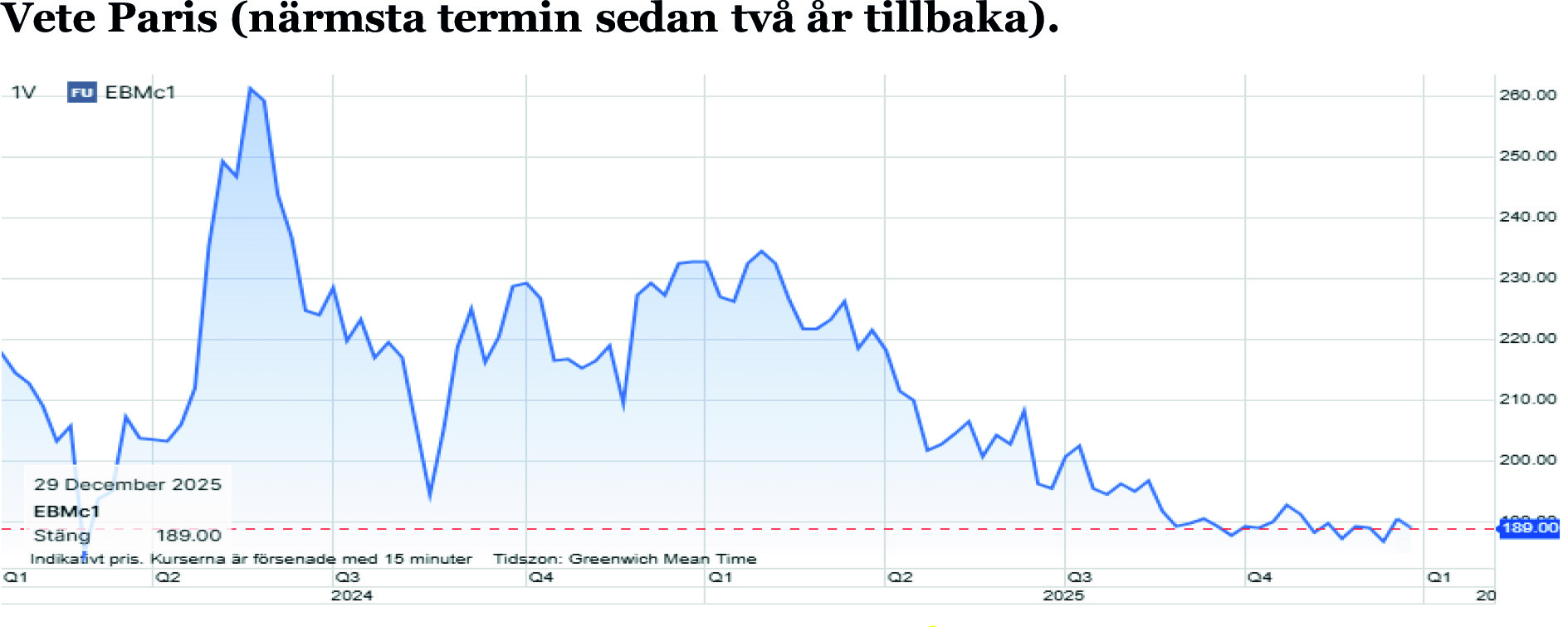 Det blev endast tre börsdagar totalt denna veckan och endast en på det nya året. Det är ingen bra vecka att dra några djupare slutsatser om vart spannmålsmarknaden är på väg. Men fakta är att spannmålspriserna föll och att vete på Matif trots allt föll under 190-nivån ytterligare en gång.