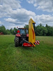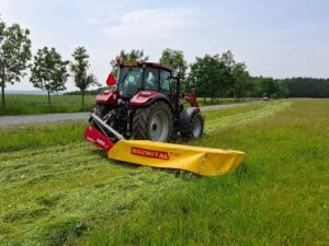 Den kan även köras tillsammans med Rozmitals frontmonterade slåttermaskin och på så vis dubblas arbetsbredden och kapaciteten.