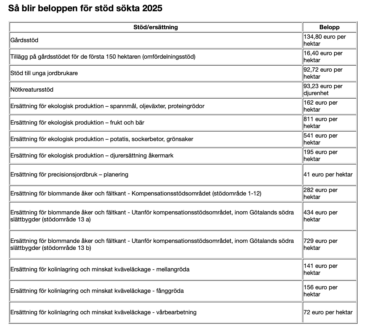 För de andra jordbrukarstöden är beloppen redan bestämda i svenska kronor.
