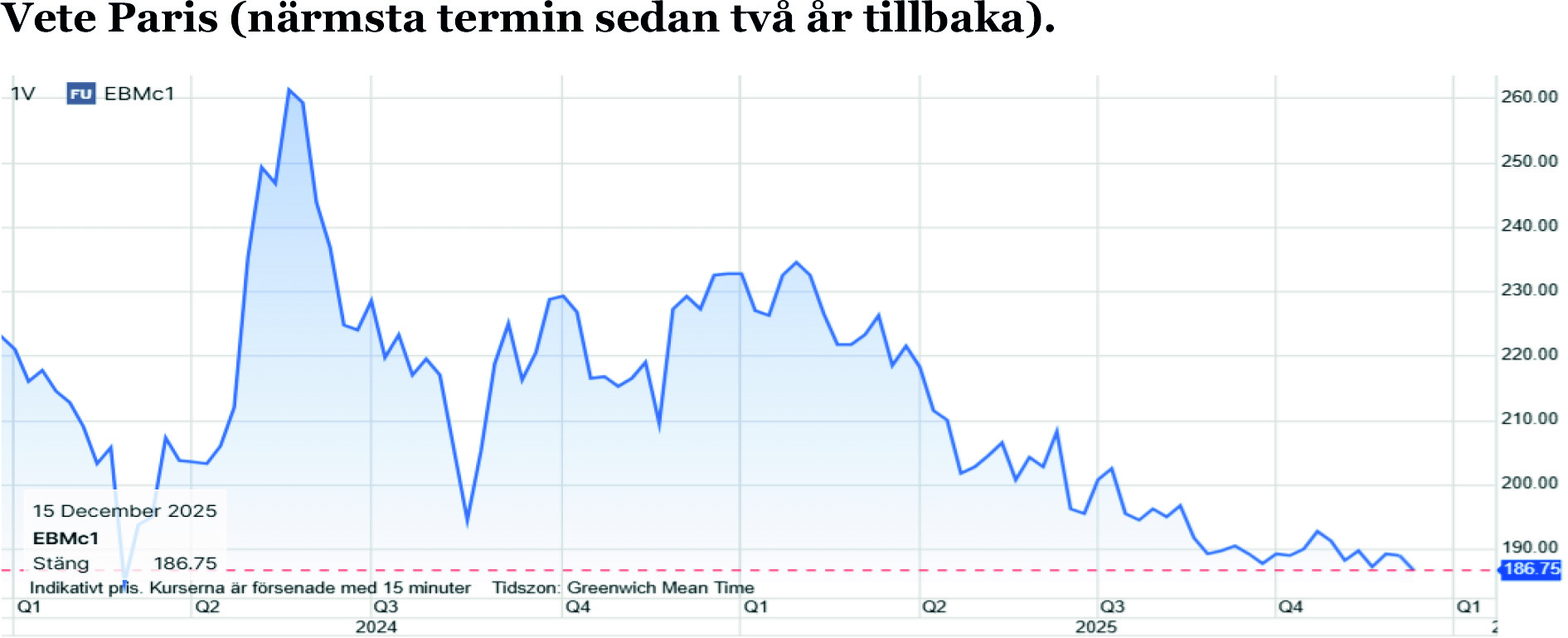 En orsak som pressar priset på samtliga grödor är att råoljan fallit rejält i pris och under veckan bröt under 60 dollar per fat och just nu står i 60:25 dollar per fat, det minsta priset under hela året och vi får gå tillbaka till år 2021 för att komma under 60 dollar.