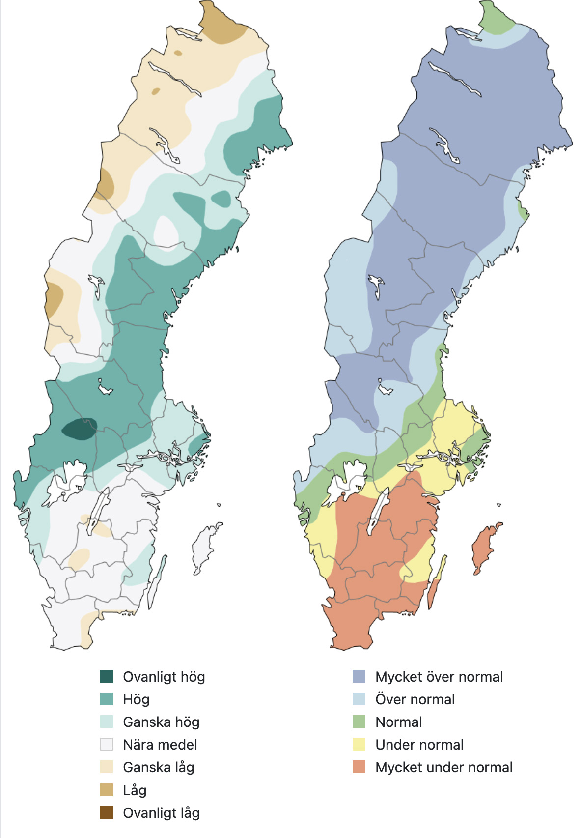 Sannolikheten för ovanligt låga nivåer i sommar bedöms för stora magasin vara som störst i Skåne och Blekinge.
