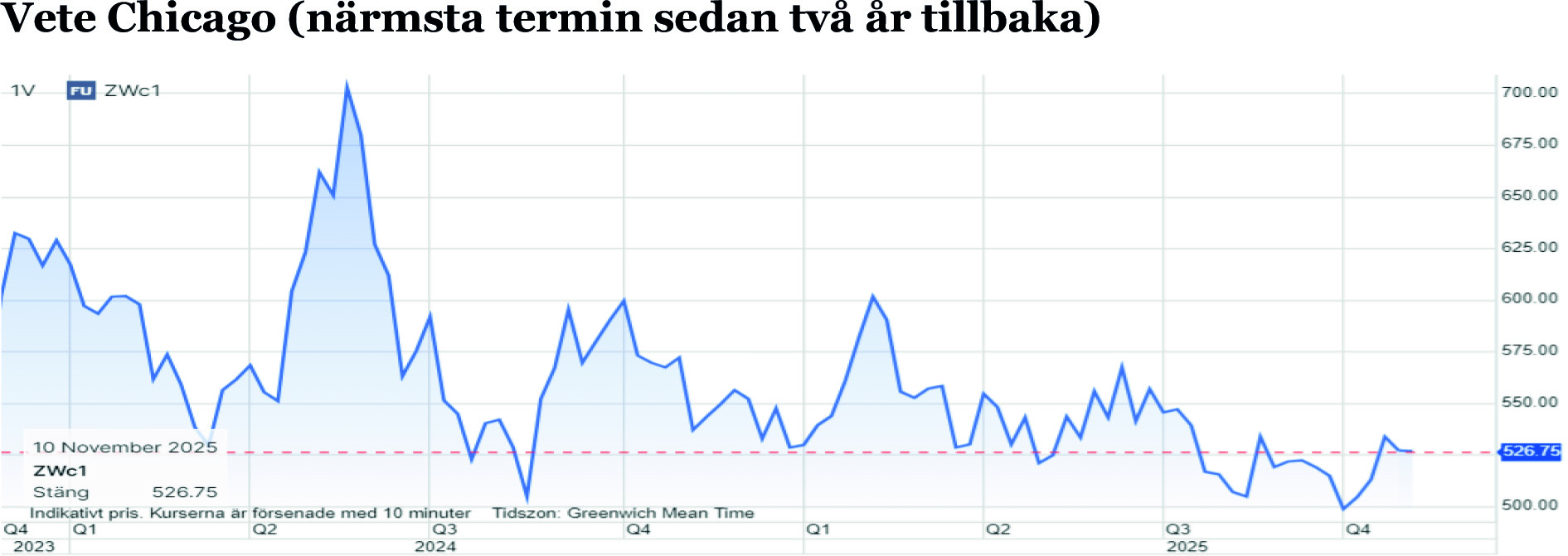 Negativt är att lagren av vete är mycket stora i Ryssland men att landet exporterat mindre än normalt. Därmed tror man på en stor export av vete från Ryssland under första halvåret 2026.