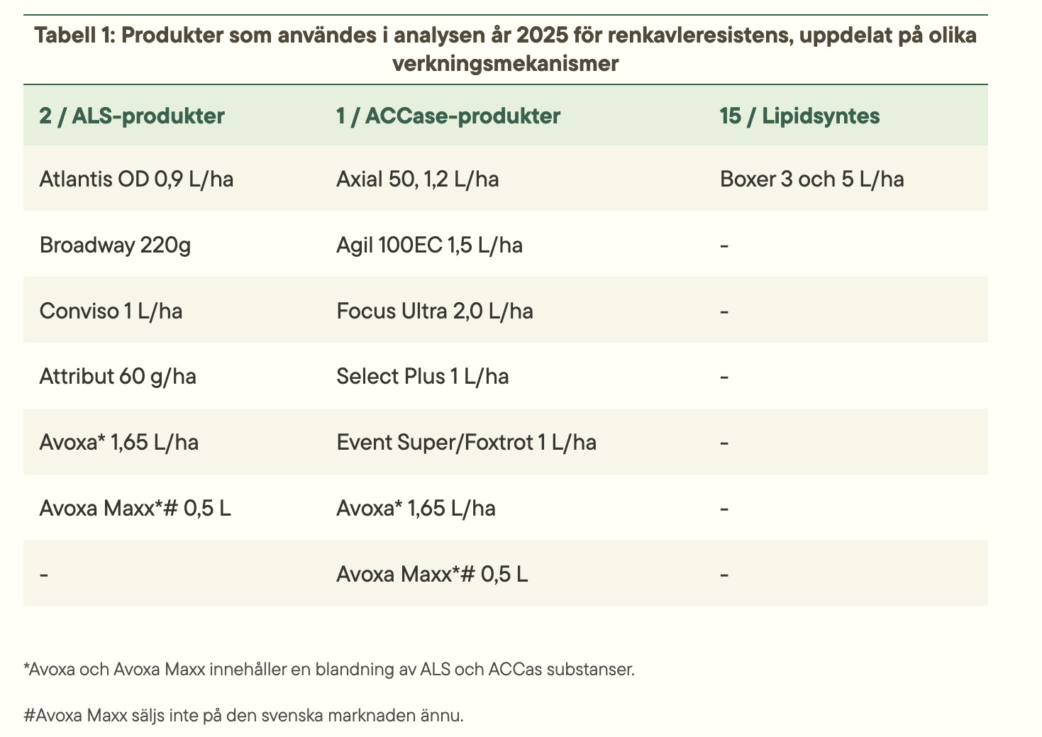 Totalt 12 preparat testades. Resistenstesten av renkavle 2025 visade vissa skillnader mot tidigare års prov.